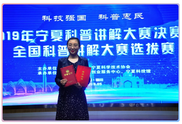 我中心职工井冰雪代表卫生健康委与来自全区各地科普场馆、景区、高校、科研院所的67名选手参加了本次比赛。最终,经过预赛和决赛的激烈角逐,井冰雪荣获了此次科普讲解大赛三等奖,并获得“宁夏科普使者”荣誉称号。