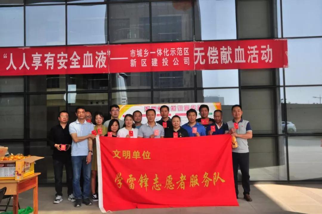 5月17日,洛阳市城乡一体化示范区管委会、洛阳新区建投公司志愿者在科技大厦楼前开展了团体献血活动。在血站工作人员引导下,示范区志愿者按序进行填表、初筛、献血,半天时间,共有77名爱心人士献血3.08万毫升。