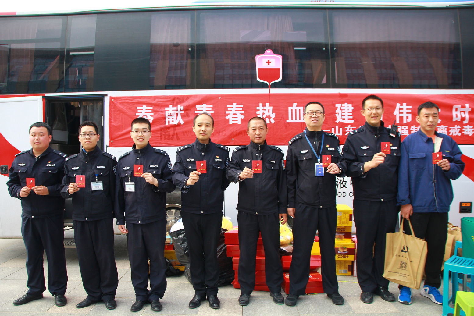 山东省鲁中强制隔离戒毒所干部职工献血后合影留念