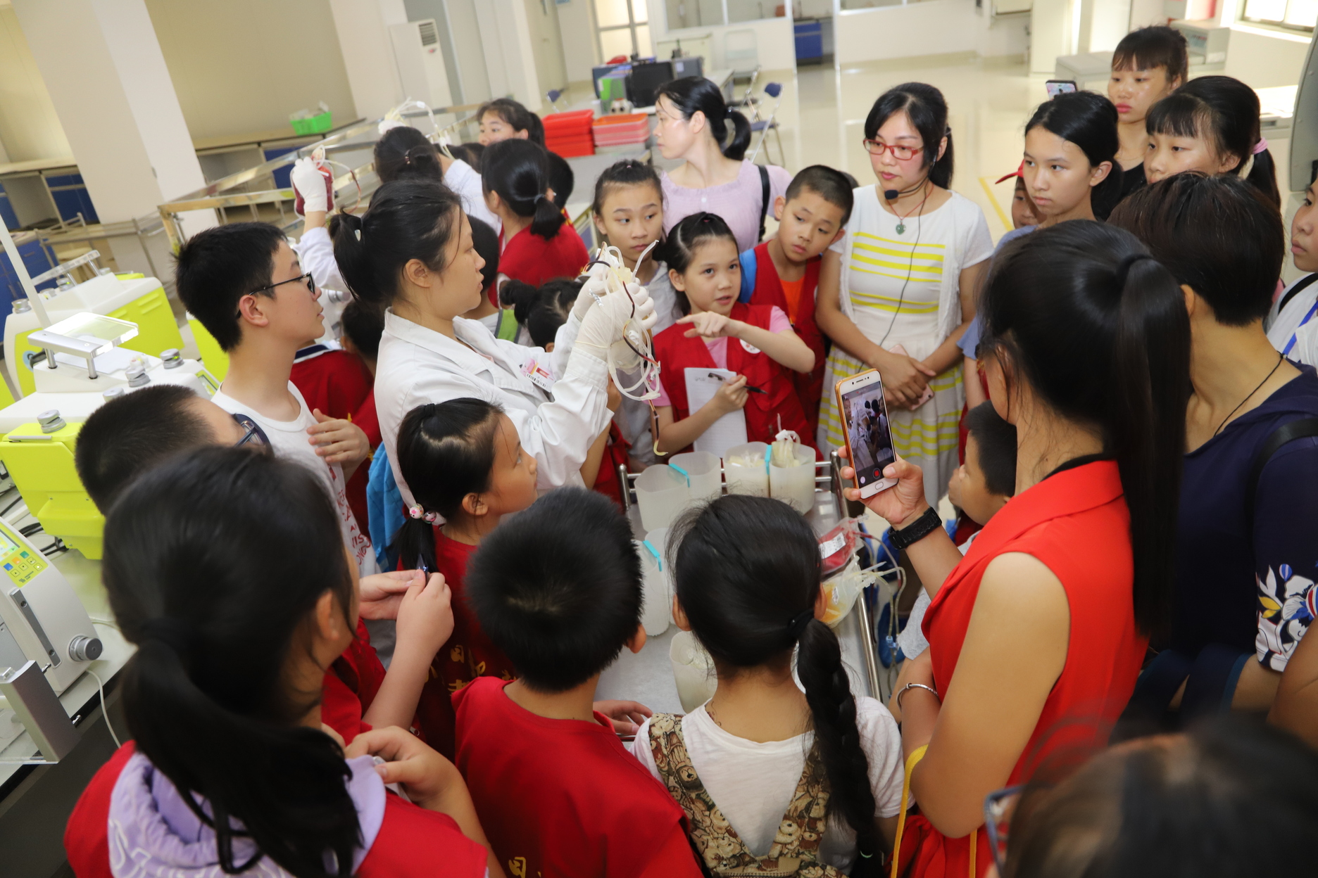 5月18日,为迎接“世界献血者日”的到来,让市民更加详细了解无偿献血的采供血流程,梧州市中心血站举办2019年血站开放日,梧州日报社小记者研学团的40组小记者家庭走进血站科研业务楼,了解血液的基本常识及血液采集、制备、检测、储存、发放、运输等一系列过程。