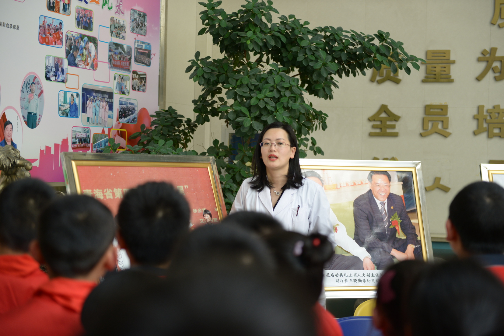 从血液的生理知识到献血的基本常识,从献血前的征询到献血后的注意事项等知识。欧老师还给孩子们讲述了在血液中心工作中发生的一些感人、有趣的故事,孩子们听得津津有味。他们目不转睛,生怕错过每一个细节。