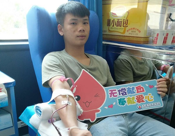 小赵一行六人来自广州,今天到南开大悦城看到献血车后,几人就决定先献血再游玩,虽然大家都是第一次献血, 新奇中带点紧张,但更多的还是兴奋,他们希望自己也能为社会为他人做点贡献,献点爱心。