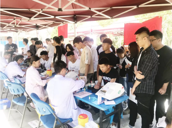 炽热的骄阳、炎热的天气,这些都没办法阻挡同学们奉献爱心的脚步。同学们伸出手臂,自发排起爱的"长龙",在工作人员的指导下进行填表、体检、验血、采血。本次献血活动得到了328名学生的支持与参与,他们共捐献血液124096毫升。