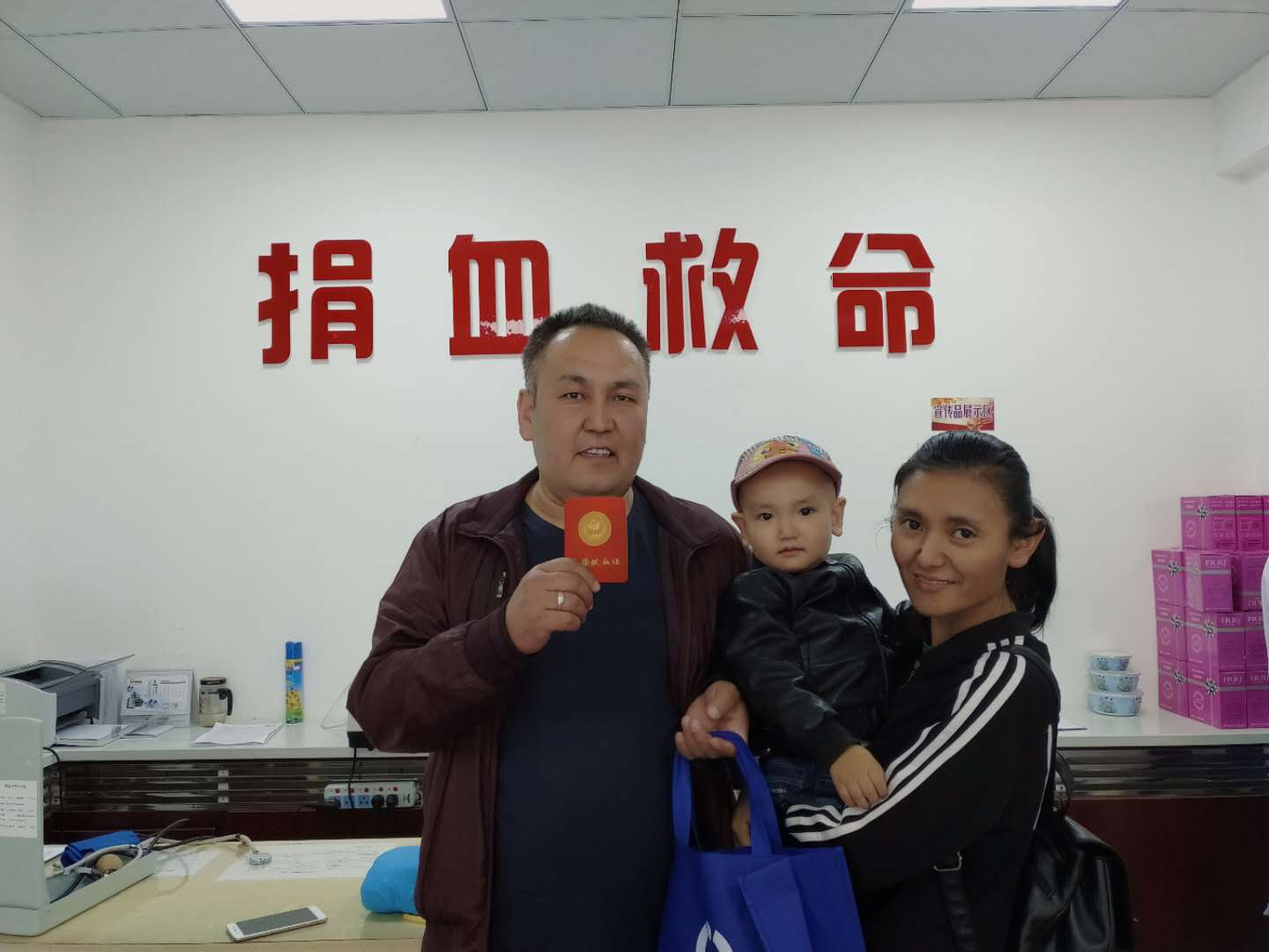 奇台爱心献血屋,迎来了阿依恒别克一家三口,他们的宝宝只有两岁。阿依恒别克也是第一次献血,对献血充满了好奇,我双手接过阿依恒别克的身份证,开始帮他填写捐血登记表,给他量完血压让他去抽血做化验。这时,他的儿子挪着小碎步走了过来,说话还不清楚,哼哼唧唧把胳膊伸过来,让我们给他也量量,很可爱的宝宝,在学习父亲的样子呢。