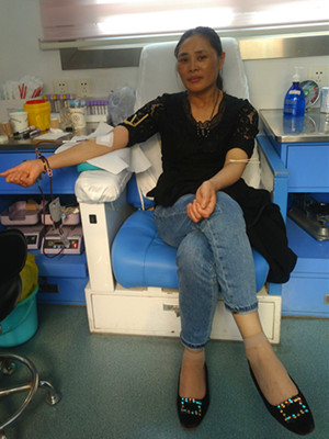 5月11日下午,位于时代广场的采血车上,走进一位女士,她叫徐高珍。徐女士今天是第一次献血,心情有点紧张,但与工作人员交流之后放松了一些,初筛合格后,徐女士坐上了采血椅,采血过程中徐女士说:“以前看别人献过血,但是我一直不敢献,心里害怕。前段时间,我的一个姐妹做心脏手术需要输血。看着她躺在病床上,很虚弱,我心里很难受。当时就想,如果我去献血,很多像我姐妹一样的病人说不定会很快好起来的,所以今天抽空来献血了。赠人玫瑰,手留余香,关键是能挽救生命,是件好事。”献完血后徐女士说:“原来献血一点都不害怕,我以后会一直坚持献下去,帮助更多的人。”