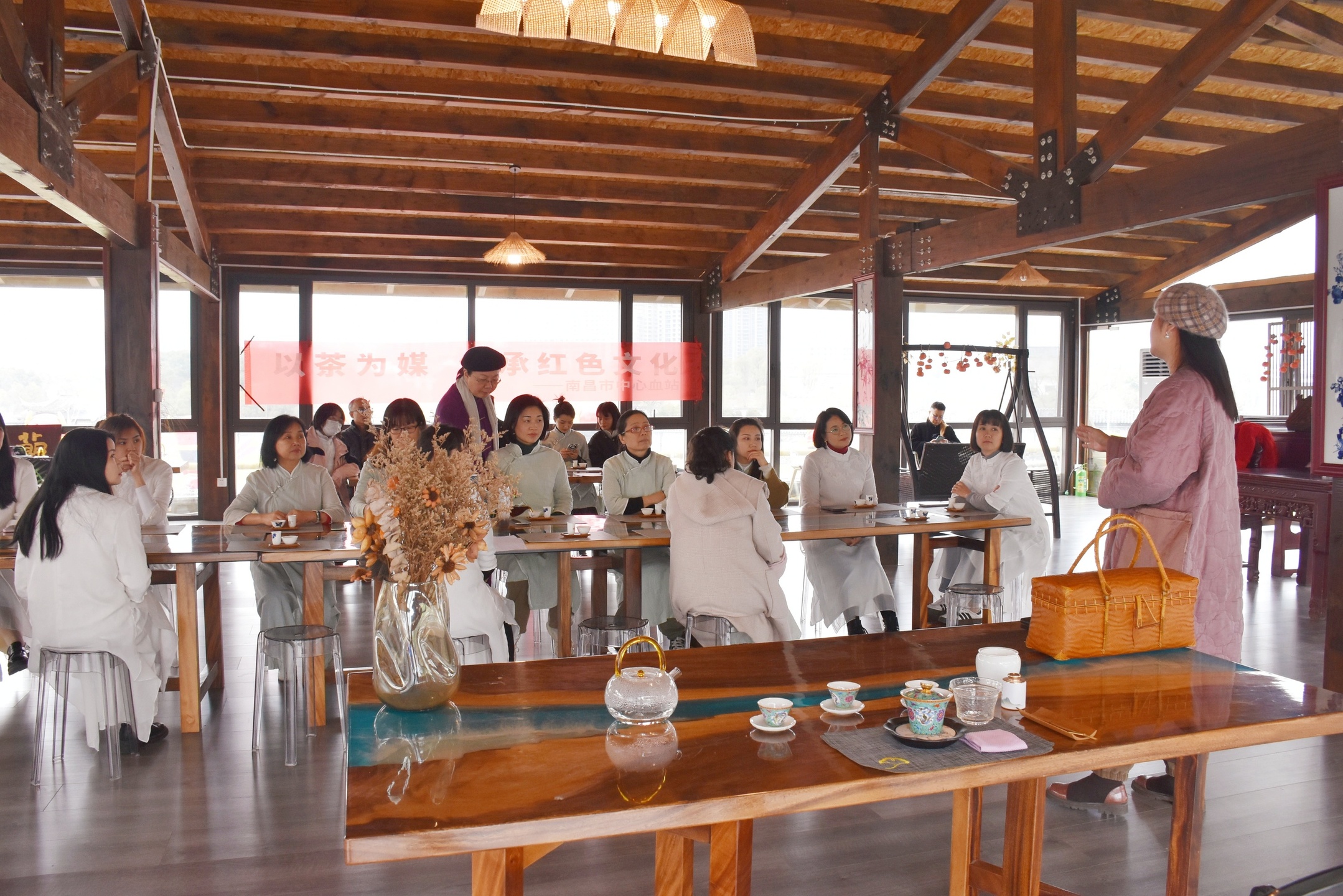 阳春三月,花开烂漫,为迎接第11 4个国际妇女节,营造温馨愉快的节日氛围,我站分别在3月6日下午、3月11日上午分别在江西省女职工素质提升培训基地开展“以茶为媒 传承红色文化——市血站庆祝‘三八’妇女节主题活动”。