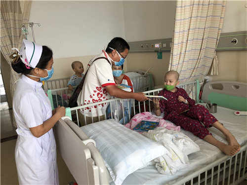 5月31日,“童心筑梦想 牵手庆六一——无偿献血者与血液病患儿见面会” 在海南省人民医院儿科内展开,十余位无偿献血者与志愿者们来到血液病患儿身边,在这个属于孩子们的节日里,为他们送上“大朋友们”的礼物与节日的祝福。