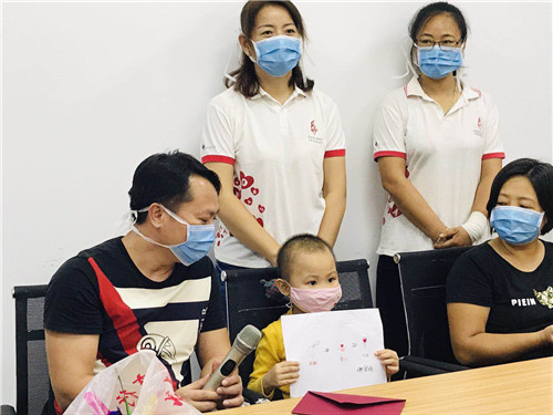 “孩子们,你们要坚强面对,一切的困难都只是暂时的,爸爸妈妈、医生护士和叔叔阿姨都是你们坚强的后盾,只要勇敢,就能够战胜病魔,你们是最棒的。”无偿献血者代表伍保江对孩子们做了简短的发言。“对于我们献血者来说,平日里只知道献血可以帮助他人,可当我今天见到这一个个可爱的孩子们的时候,我才真正感觉到我坚持了多年的无偿献血是这么的富有价值和意义。”伍保江感慨的说道。