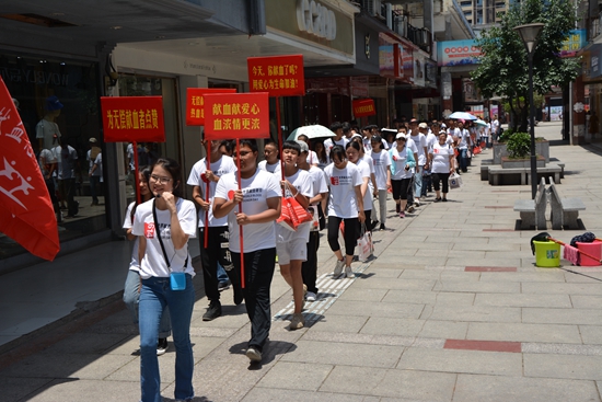 志愿者们走上街头开展无偿献血宣传活动