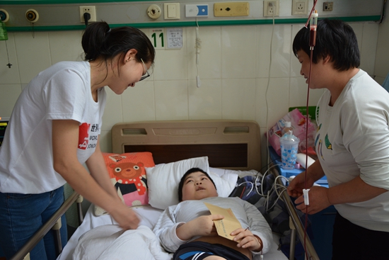 志愿者代表慰问再生障碍性贫血患儿