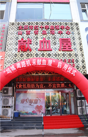 多年来,太原市红十字血液中心秉持“实施并持续改进全面质量管理体系,不断提升科技水平,为献血者和受血者提供安全、有效、满意的服务”的质量方针,夯基础,抓管理,强服务,提本领,拓业务,规程序,使我市无偿献血工作取得了长足的发展,太原市连续11届22年荣获“全国无偿献血先进城市”称号。“坞城南路机采献血屋”的正式启用,不仅能成为宣传血液知识科普的基地,而且也将成为展示太原市精神文明的一个窗口。我们将以此为新的起点,以崭新的姿态,以强烈的使命感和责任感,为献血者及临床医院提供优质的服务及安全的血液。太原市红十字血液中心主任白林、机采服务科科长侯晓岩率先垂范挽袖献血奉献,希望社会各界继续一如既往地理解、关心、支持无偿献血工作的发展,同时也呼吁更多市民加入到无偿献血者队伍中来,用行动和爱心挽救他人的生命,为太原市精神文明建设做出积极的贡献!