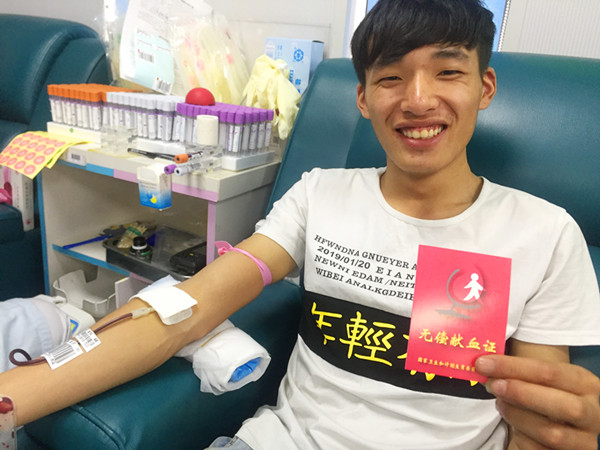 冯亚凯今年19岁,是河北省邯郸人,他刚满18岁就开始献血了,他说,他说他打算每年都献血,这样既能为社会做点力所能及的事,对家人也是个保障,是件一举两得的好事。