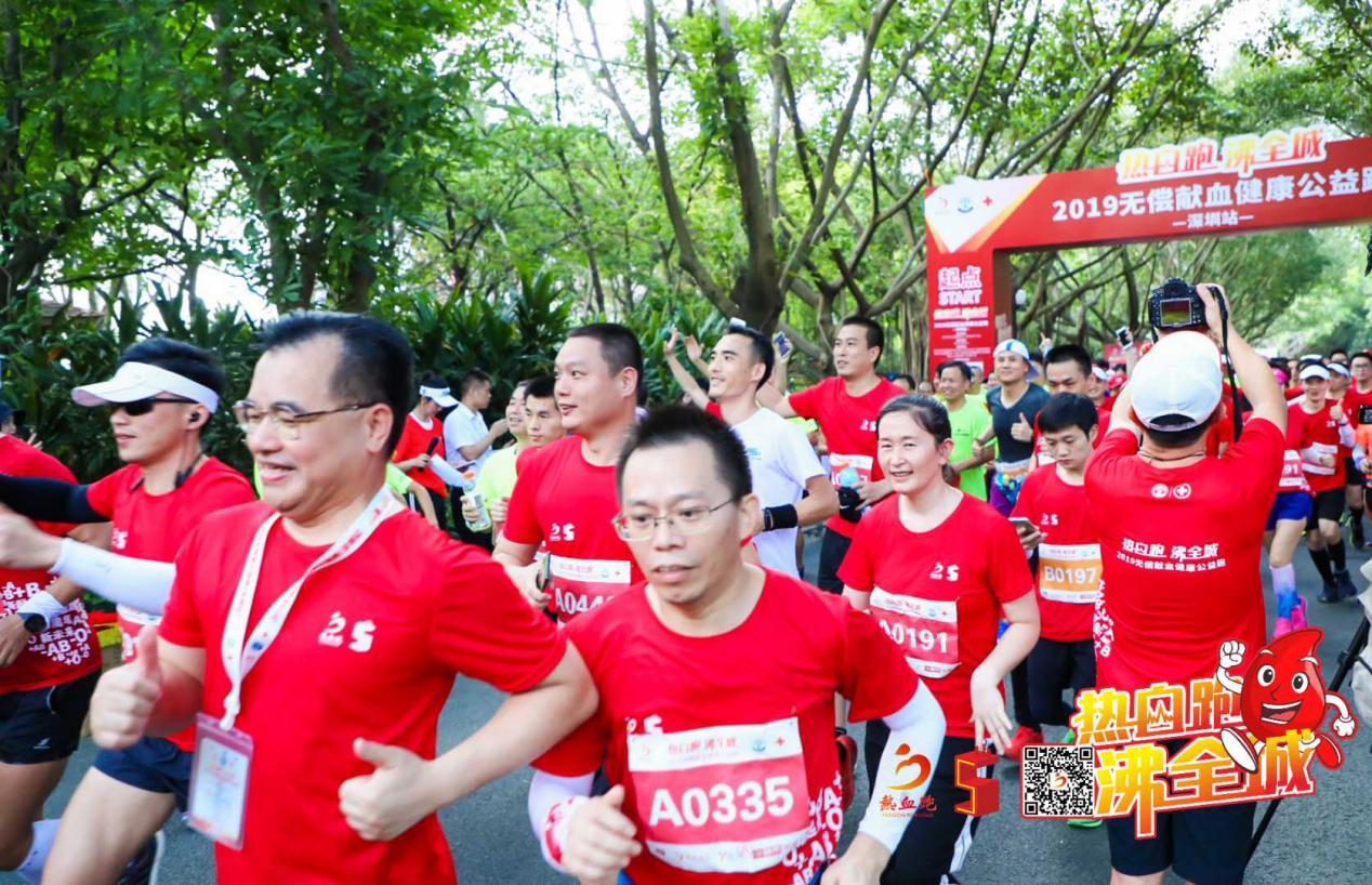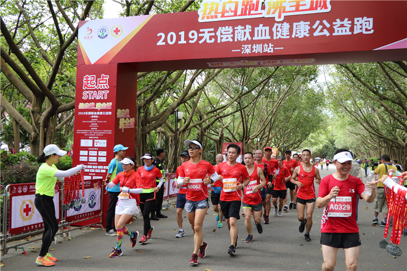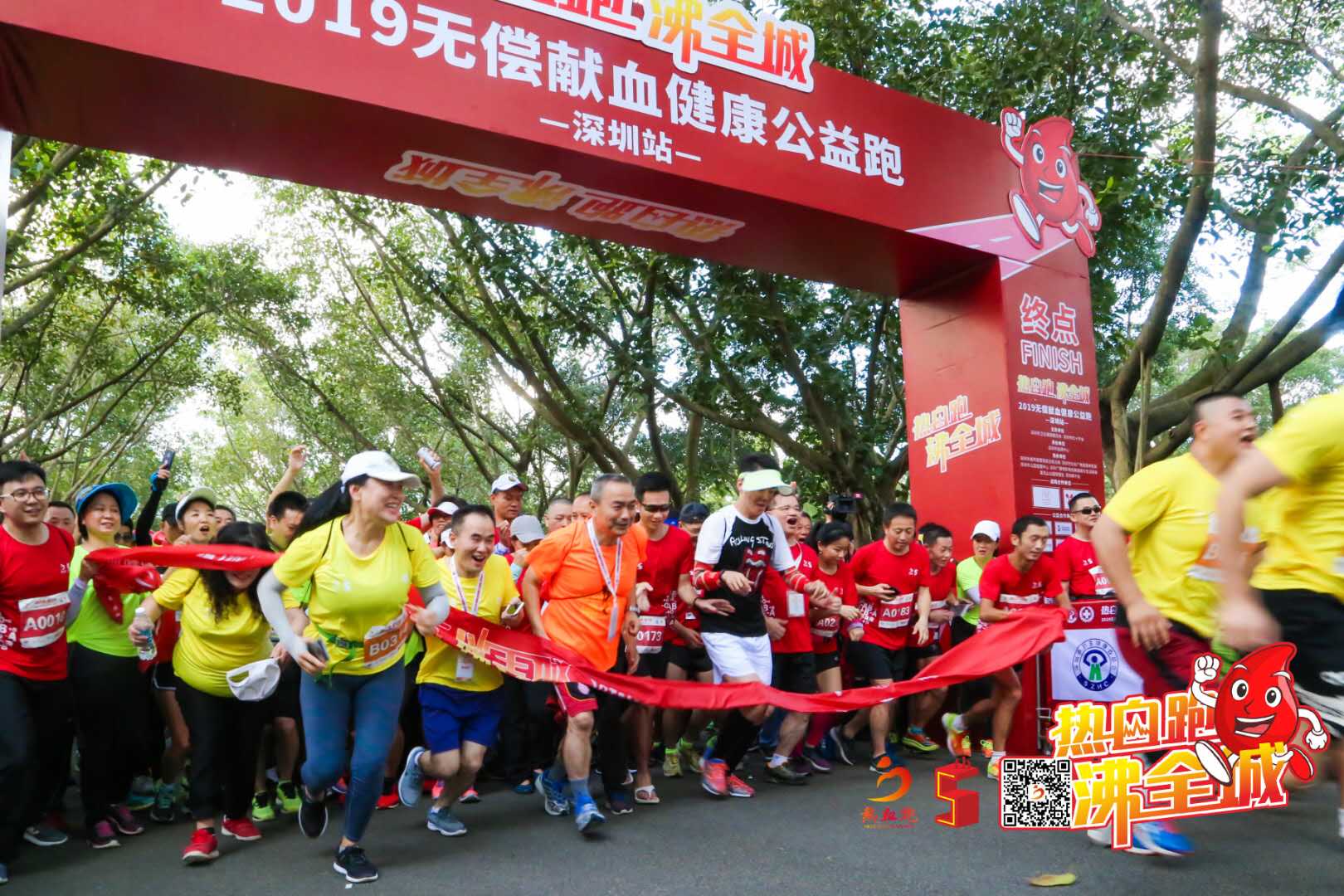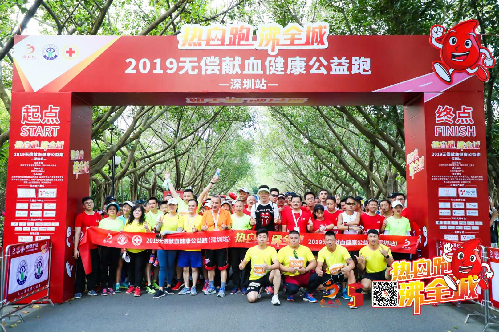 由深圳市卫生健康委员会、深圳市红十字会主办,深圳市血液中心承办,深圳市志愿服务基金会、深圳市血之缘公益基金会、深圳市城市管理和综合执法局、深圳市文化广电旅游体育局、深圳市公园管理中心、深圳市广播电影集团娱乐生活频道、莲花山公园管理处、深圳狮子会协办,深圳市热血体育文化管理有限公司、深圳市血之缘医疗科技有限公司运营的“热血跑 沸全城”2019无偿献血健康公益跑(深圳站)于2019年6月9日8:00在深圳市莲花山公园鸣笛开跑。活动旨在通过健康运动的方式,向市民普及献血知识,宣传无偿献血公益理念,并传递积极向上的正能量。
