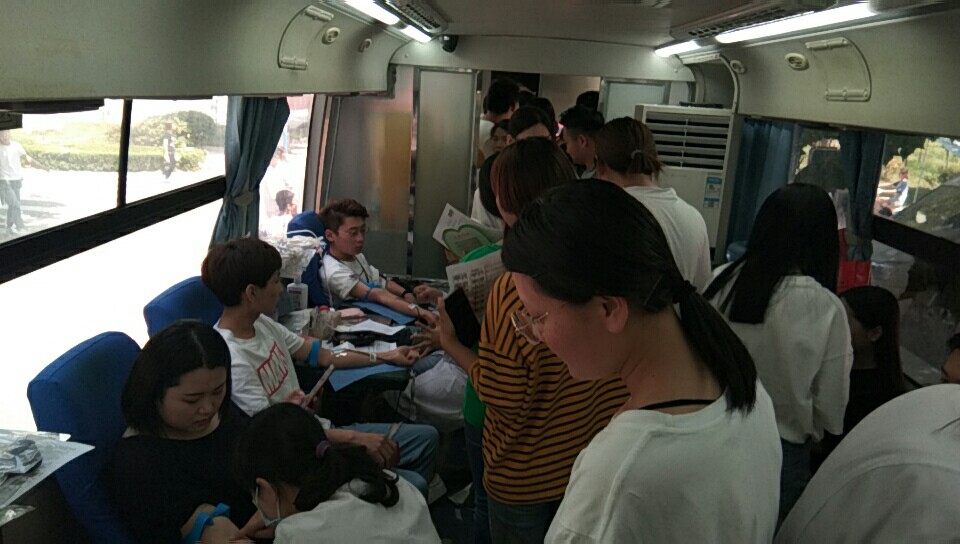活动现场,参加献血老师和同学们精神饱满,情绪高昂,脸上洋溢着无私奉献和乐于助人的微笑,学生志愿者协助引导排队,依次填表、体检、验血型、采血、颁发献血证及纪念品,每一个步骤都井然有序的进行着。