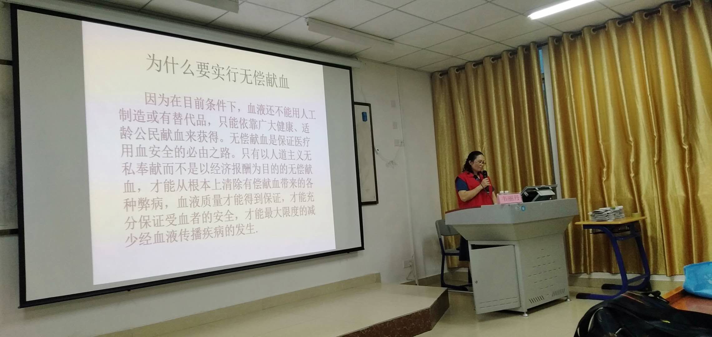 为深入推动校园开展无偿献血活动,6月3日下午19点30分,百色市无偿献血志愿者服务队进入广西培贤国际职业学院开展一场题为“舞动青春 热血闪耀 爱满铝城”的无偿献血知识讲座。