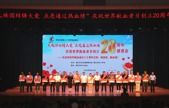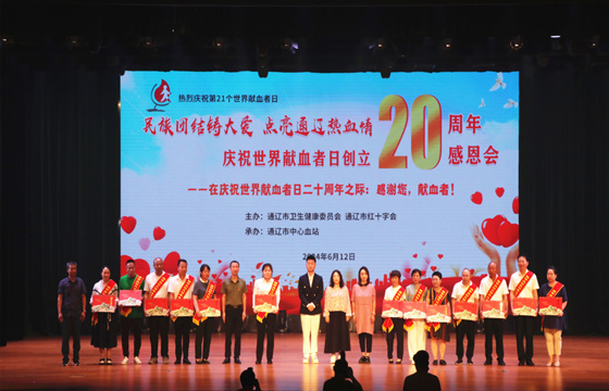 为感恩无偿献血者为挽救他人生命作出的贡献,大力宣传无偿献血科普知识,6月12日,由通辽市卫生健康委员会、通辽市红十字会主办,通辽市中心血站承办的“民族团结铸大爱,点亮通辽热血情”庆祝世界献血者日创立20周年感恩会在通辽职业学院护理综合实训楼报告厅举办,通辽市融媒体对活动情况进行了全程线上直播。