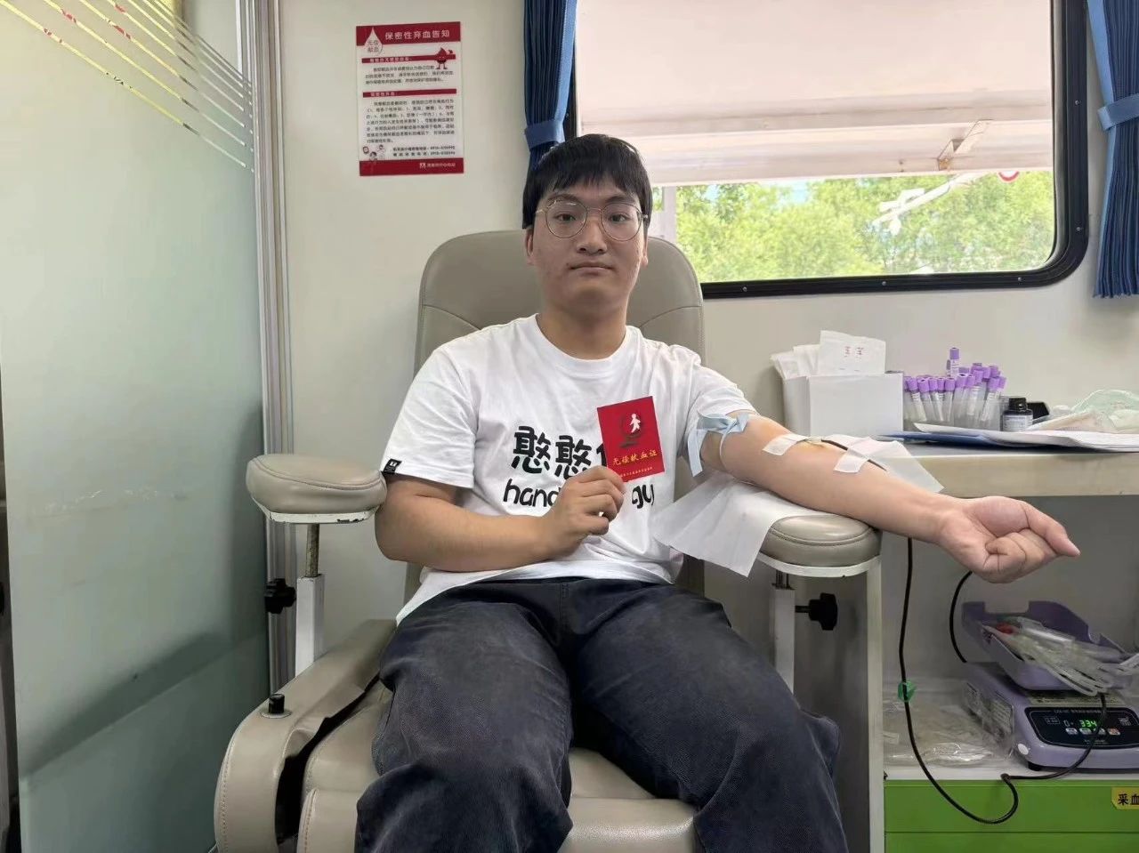 6月9日,高考结束的第二天,龙之杰在妈妈的陪伴下来到市中心广场献血屋,他选择伸出手臂,用无偿献血的方式,告别自己的努力拼搏,挥洒过汗水的高中时代,为自己的高中生活画上一个圆满的句号,用热血迎接人生的新征程。