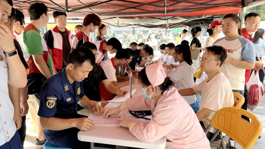 活动现场等待献血的人排起了长长的队伍,40℃的高温天气也没有阻挡大家捐献血液的热情,其中有多次献血经验的志愿者,也有初次献血紧张而兴奋的志愿者,挽起衣袖、伸出胳膊,每个参与无偿献血的志愿者脸上都洋溢着笑容,一袋袋热血诠释着无私奉献的大爱,向社会各界传递着积极向上、无私奉献的青春正能量。