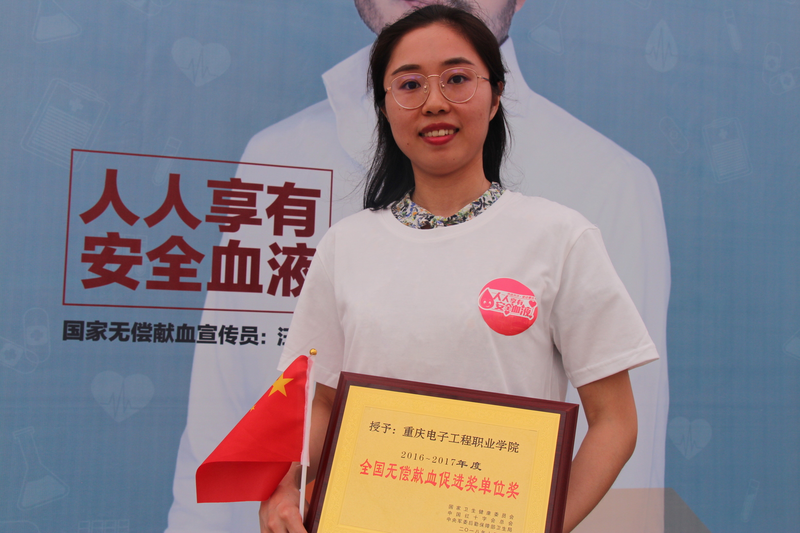 重庆电子工程职业学院获全国无偿献血促进奖单位奖 校方代表彭婧上台领奖