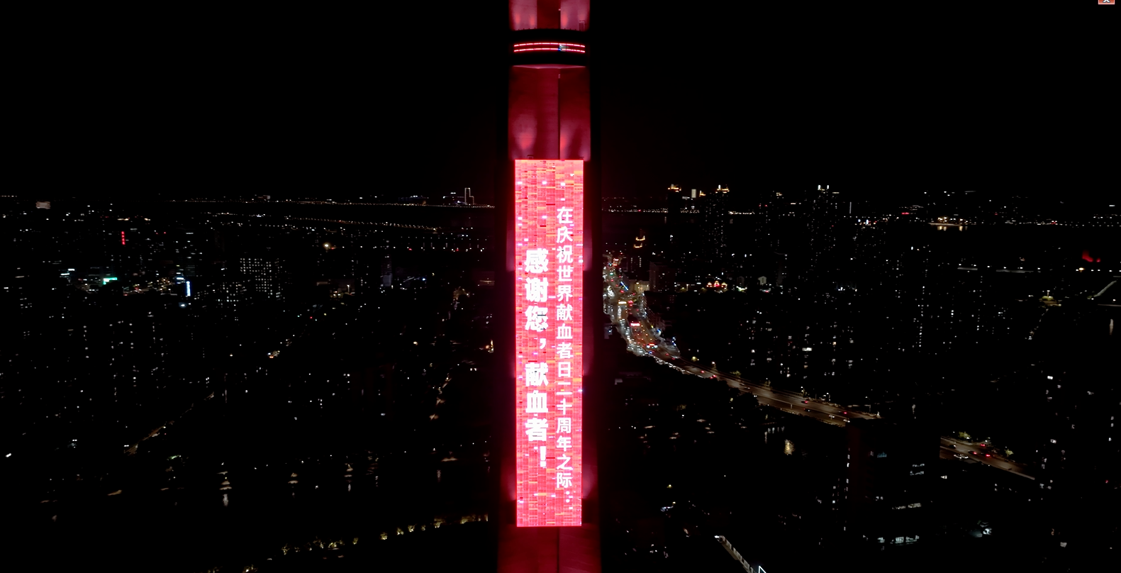 在这一个重要的时刻,不只是总结过去,反思成就,还有更多的是致敬,是感谢,“感谢您,献血者!”6月14日,江苏省输血协会、江苏省血液中心、南京市红十字会、南京红十字血液中心携手点亮紫金塔(江苏电视塔),以绚烂的美景致敬所有无私奉献的无偿献血者们。
