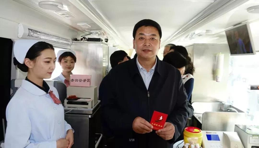 青海省委常委、副省长严金海在省卫生健康委员会吴捷主任的陪同下走上献血车慰问无偿献血者,向他们致以节日的问候和崇高的敬意。