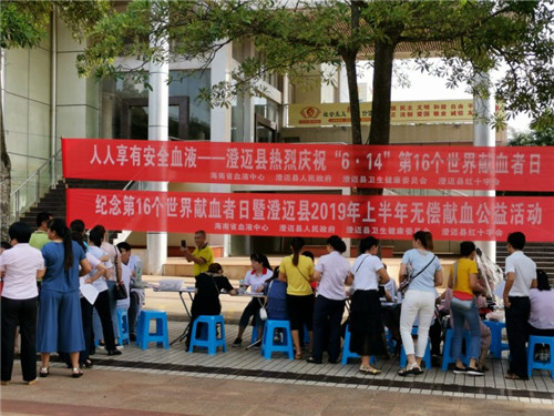 为迎接第16个世界献血者日,向公民宣传普及无偿献血知识,以保障全省临床用血的安全和需求。6月13日,澄迈县人民政府、县卫健委和县红十字会联合在金江影剧院门口举行纪念第16个世界献血者日暨澄迈县2019年上半年无偿献血公益活动。