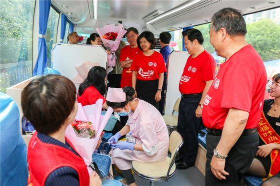 为感谢无偿献血者踊跃献血,刘志仁等市领导一行到献血活动现场看望慰问无偿献血者。启动仪式上,我市7位献血100次以上的无偿献血者代表接受慰问,刘志仁为献血者授花,颁发荣誉证书。刘志仁表示,每一位无偿献血者都值得被尊重,献血者的无私大爱值得全市人民学习,希望通过此次活动号召更多的人积极参加献血,让全市人民都能享有安全的血液。