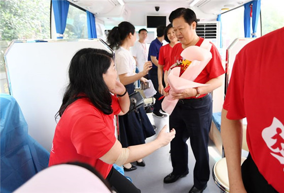 (刘志仁慰问无偿献血者 李科/摄)