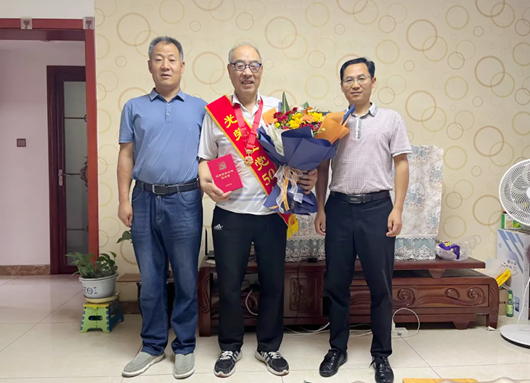 百年光辉历程,五十载初心如磐。为庆祝中国共产党成立103周年,发扬红色精神,传承红色基因,7月1日,咸阳市中心血站特别安排了一场温馨而庄重的探访活动,向光荣在党50年的老党员窦宏伟同志表达敬意和关怀。
