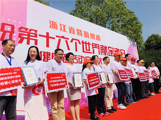 同时,浙江大学医学院附属第一医院、浙江大学医学院附属第二医院、浙江大学医学院附属邵逸夫医院、浙江省人民医院、浙江省中医院、杭州市第一人民医院、杭州市中医院、杭州市红十字会医院各捐赠100份体检卡,共计800份免费体检卡用于关爱无偿献血者和无偿献血志愿者。