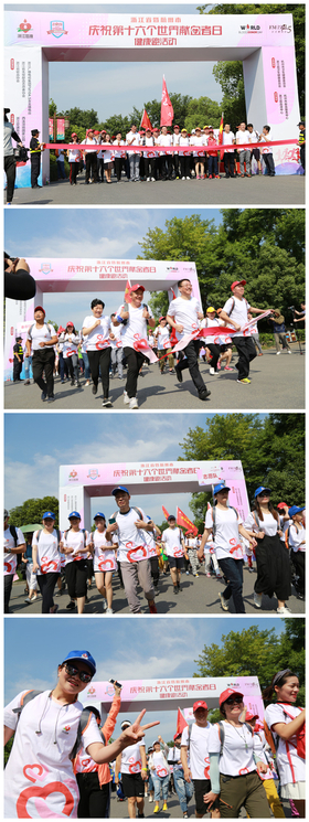 浙江省卫生健康委员会曹启峰副主任、杭州市卫生健康委员会应旭旻副主任一起为健康跑活动鸣笛开跑,各方阵有序出发。