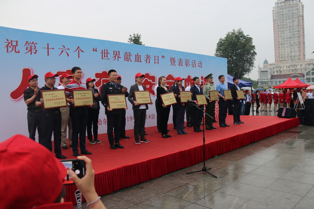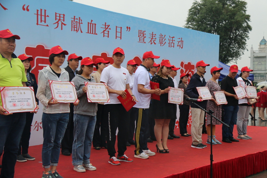 从1998年《中华人民共和国献血法》颁布至2018年底,哈尔滨市累计有18865人荣获国家无偿献血奉献奖,其中金奖3799人,银奖3854人,铜奖11212人。其中获得2016年-2017年国家无偿献血奉献奖金奖893人、银奖1033人、铜奖2702人,获奖者总数达4628人。