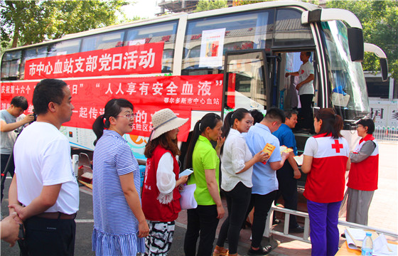 每年的6月14日,是一个向献血者致敬的重要节日。今年我们迎来了“第十六个世界献血者日”宣传活动,宣传口号是“人人享有安全血液”。鄂尔多斯市中心血站紧扣这一主题,在宝如意商场前开展宣传活动,以此感谢献血者挽救患者生命的高尚举动,旨在让爱在奉献中永恒,让无偿献血体现城市文明,让更多因失血等待救助的患者得到重生。