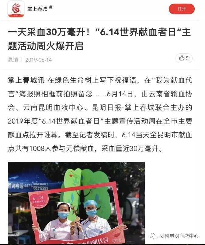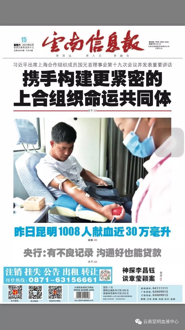 【“6·14世界献血者日”主题活动昨天举行 昆明1008人 一天内献血近30万毫升】