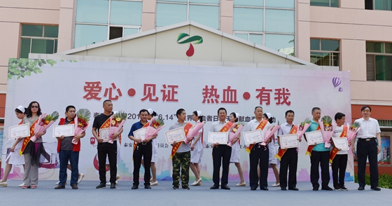 今年世界献血者日的活动主题是“人人享有安全血液”,旨在倡导各级政府、各部门、各单位积极开展无偿献血的组织、宣传动员工作,鼓励更多的适龄健康公民定期参加无偿献血,群策群力,提升临床血液供应安全水平,实现血液安全全覆盖。当天上午,市卫生健康委、市红十字会领导,泰安市荣获2016-2017年度全国无偿献血奉献奖的获奖者代表,荣获2016-2017年度全国无偿献血促进奖获奖单位负责人,荣获2016-2017年度全国无偿捐献造血干细胞奉献奖获奖者代表,山东第一医科大学外国留学生献血者代表,泰安市无偿献血志愿者服务队代表,泰安市红十字志愿者服务队代表,红十字泰山救援队代表,驻泰高校无偿献血爱心联盟代表,泰安市RH(-)稀有血型爱心联盟代表,齐鲁交通集团泰安分公司电子收费客服中心志愿者代表,市中心血站干部职工代表,以及省市两级主流新闻媒体代表共计140余人出席了活动。(马克)