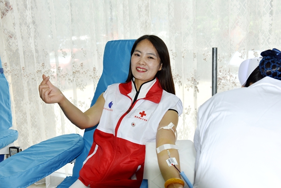红十字志愿者服务队志愿者活动后捐献血液(马克 摄影)