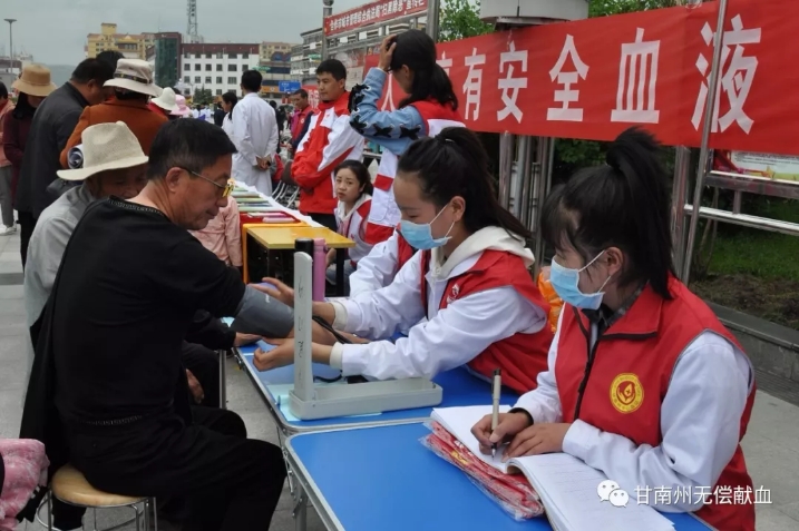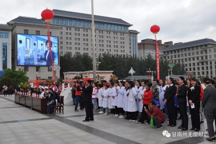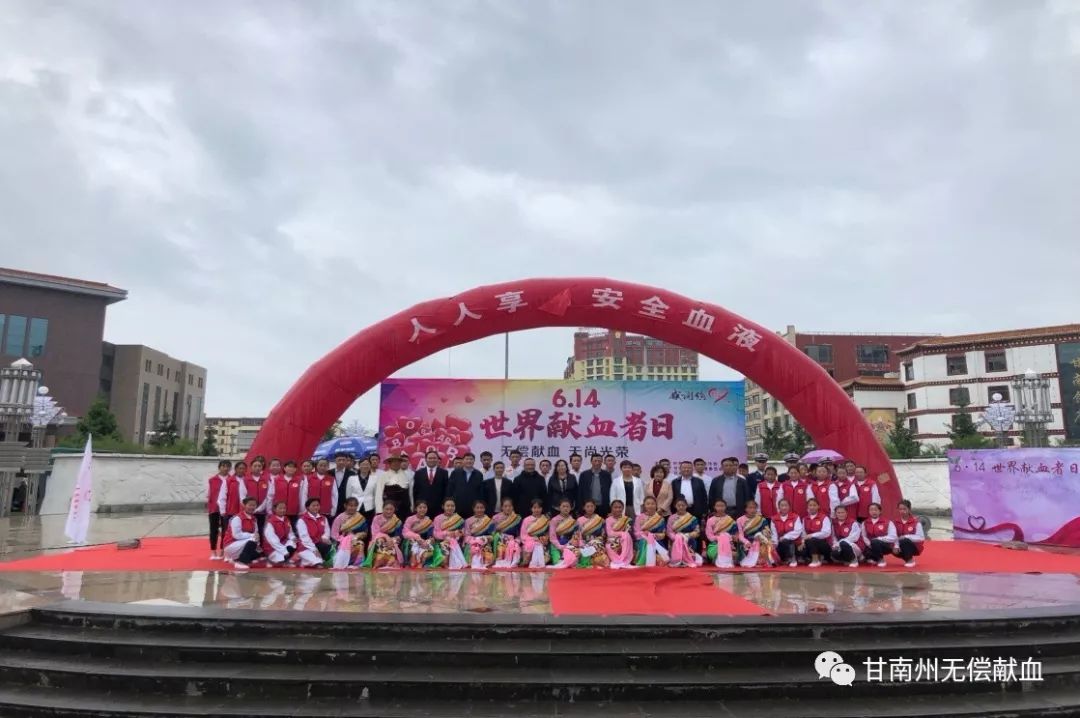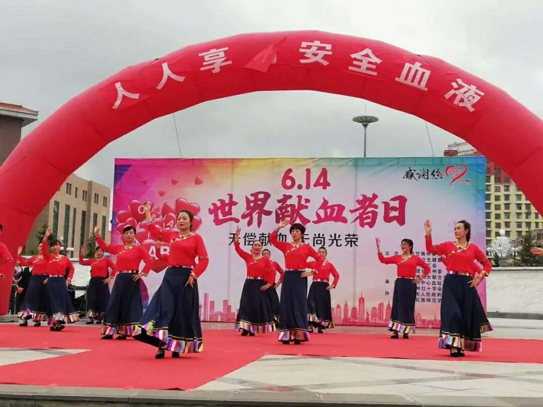 为进一步弘扬人道博爱,无私奉献精神,甘肃省甘南州委、州政府、州无偿献血领导小组,于6月14日上午,在甘肃省合作市“香巴拉文化广场”举办一场以“人人享有安全血液”为主题的大型公益宣传活动。目的是通过此次活动,感谢全州无偿献血者、无偿献血志愿者,提高人们对定期献血必要性的认识,鼓励更多的人加入无偿献血队伍,保障临床患者用血安全。