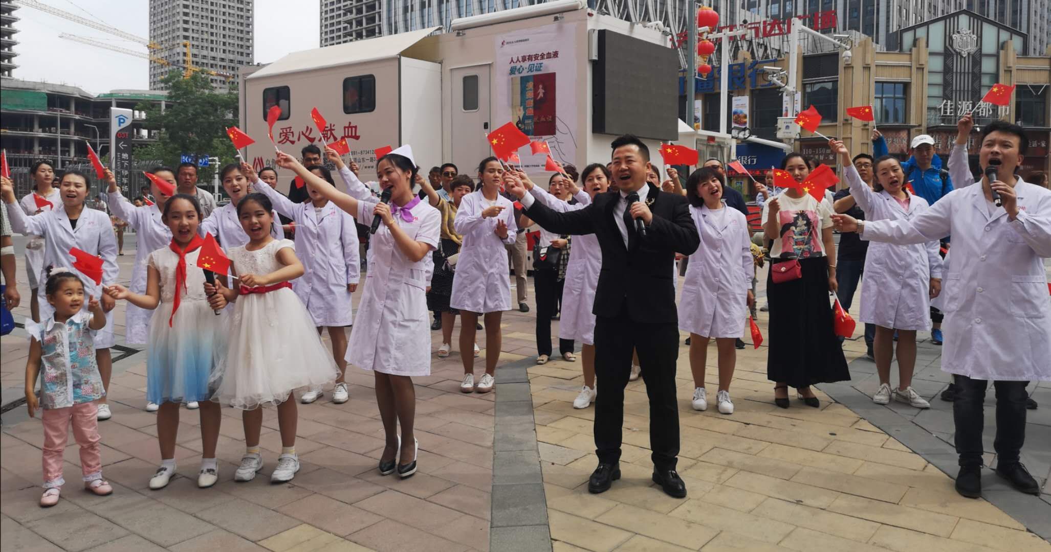 乌鲁木齐市血液中心在新疆大学、乌鲁木齐经济技术开发区万达广场开展了两场快闪活动,市血液中心邀请乌鲁木齐市无偿献血形象大使航志、新疆大学学生、无偿献血志愿者与血液中心工作人员共同参加本次活动,大家一起唱响《我和我的祖国》,在歌唱祖国的富强、人民的幸福和生活的美好的同时,向大家宣传无偿献血,鼓励更多人加入到无偿献血队伍中。