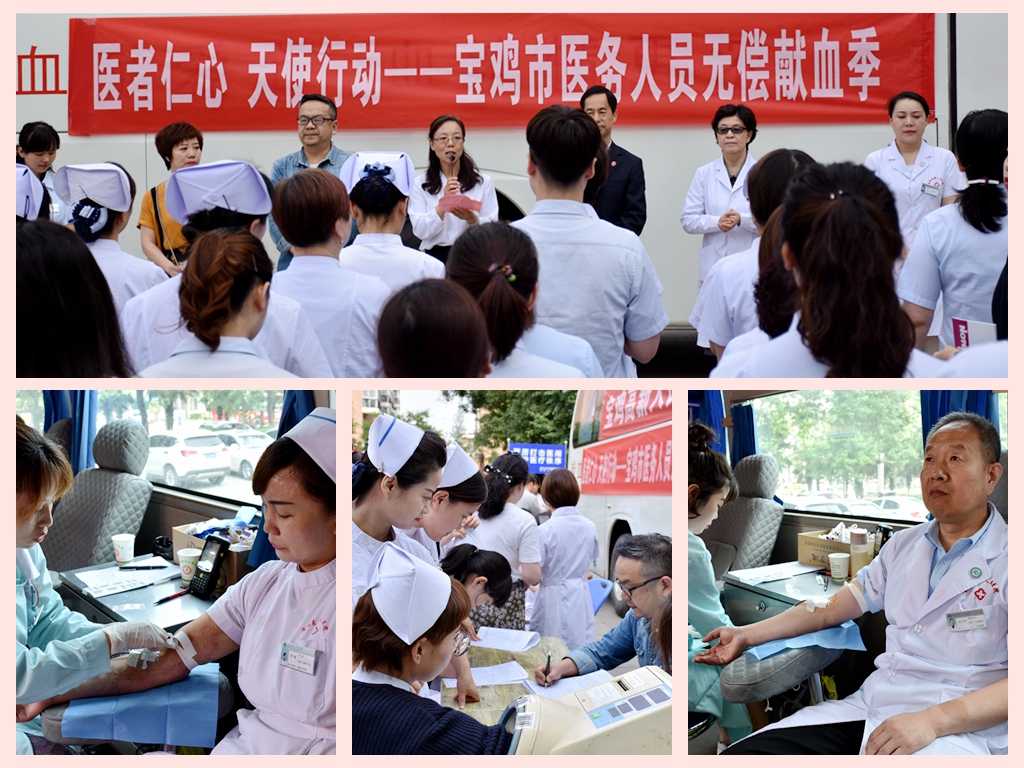 近期,宝鸡高新人民医院组织无偿献血活动,全体医护人员以无偿献血的形式为庆祝建院七周年献礼。同时,宝鸡市“医者仁心天使行动”医务人员献血季正式启动。