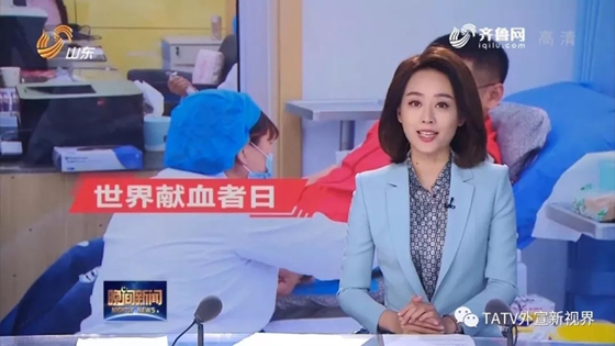 外国留学生献血回报中国的新闻当天在山东卫视晚间新闻报道