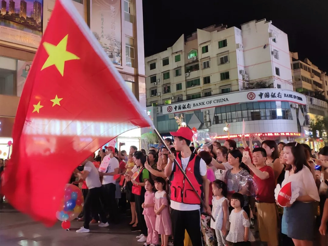 纷纷举起手中的国旗