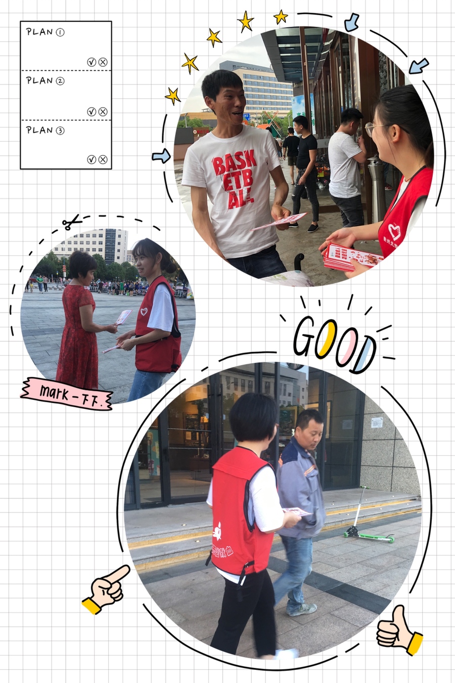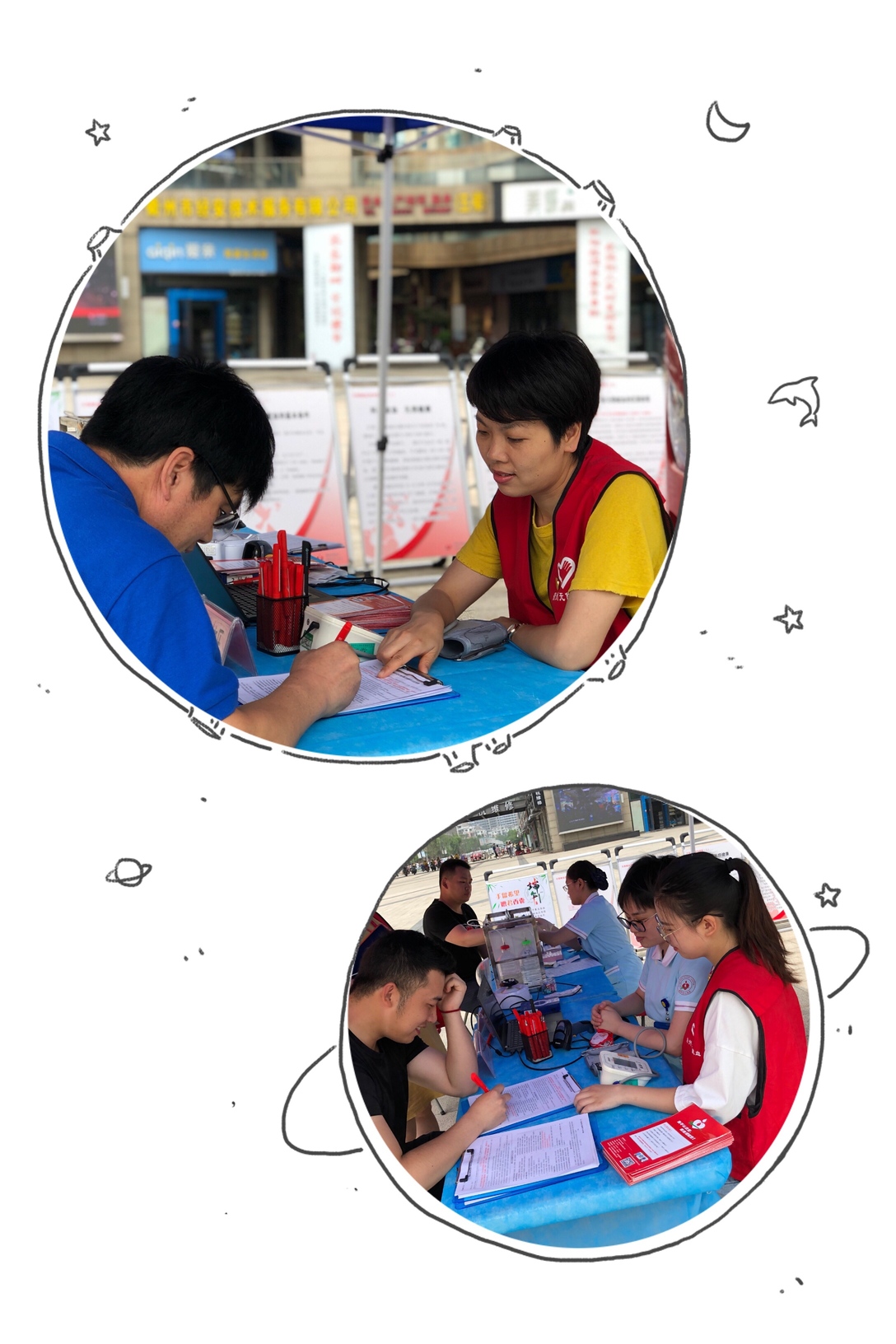 看!志愿者在发宣传资料,为市民普及献血知识