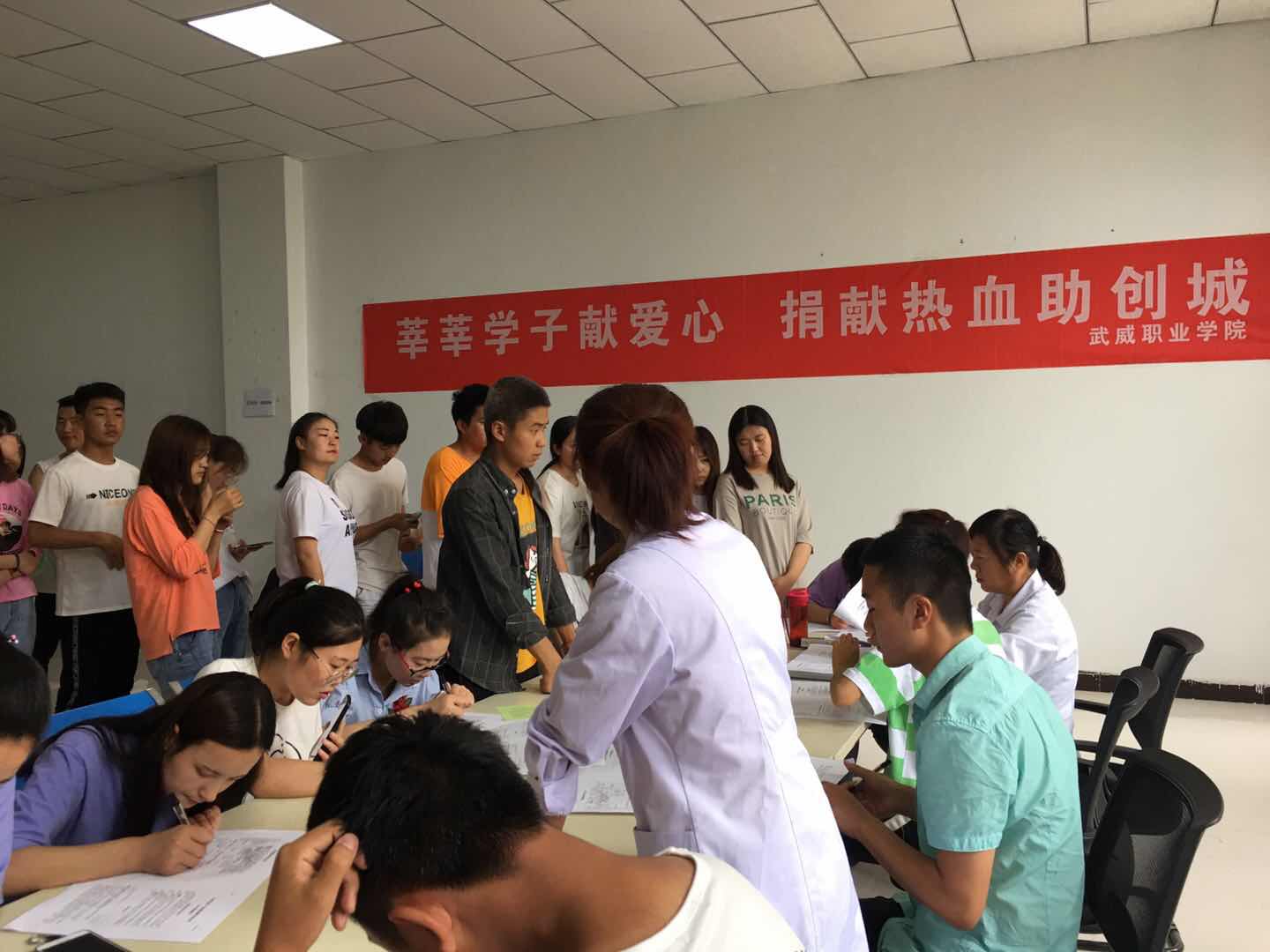 在第16个“世界献血者日”到来之际,为弘扬救死扶伤的人道主义精神,进一步培育志愿服务精神,围绕“人人享有安全血液”的主题,甘肃省武威市红十字会、甘肃畜牧工程职业技术学院、武威职业学院和武威市中心血站分别于6月12日、6月20日在两所高校联合开展了以“武威学子献热血,勇当先锋助创城”为口号的高校无偿献血暨造血干细胞标本采集活动。