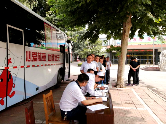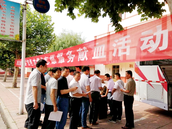 6月22日,在“七·一”党的生日即将到来之际,山东能源肥矿集团曹庄煤矿党委组织党员干部,在矿办公楼前开展了无偿献血公益活动,掀起了一场主题为“红色力量”的爱心热潮。活动伊始,曹庄煤矿党委副书记马成率先垂范,带头献血400毫升。随后,曹庄煤矿的党员干部们在市中心血站工作人员的指导下,认真填表登记、测量血压、抽血初筛,积极配合医护人员的采血工作。在当天的献血人员中,既有累计献血9600毫升,荣获全国无偿献血奉献奖金奖的党员赵万民,以及荣获全国无偿献血奉献奖铜奖的武仁明等资深献血者,也有一些刚刚加入无偿献血者队伍的年轻党员。当大家拿到属于自己的无偿献血证时,脸上都露出了自豪的笑容,献血活动现场处处洋溢着奉献爱心后的喜悦。
