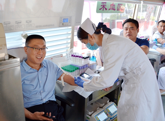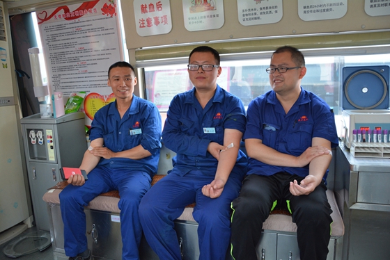 公司纪委书记、副总经理冯刘昌带头无偿献血(王峰 摄影)