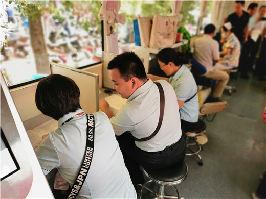 登记、填表、检验,准备献血,一切秩序井然。王顺利一边指导大家如何填写登记表,一边讲述无偿献血者的相关待遇及献血注意事项。随后,无论是领导,还是普通党员,在医务人员的指引下一一坐在了采血椅上,镇定地把手臂伸向了采血护士,他们笑容满面,精神振奋,办公室梁主任说:“单位这次党员实践活动很有意义,要给大家都拍张照做留念,记下今天最美的瞬间”。