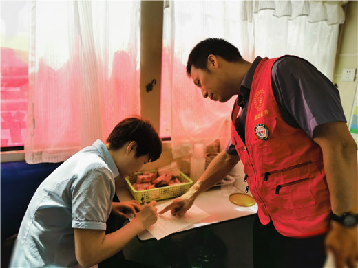 来自王杰主题邮局的王清,因为参加儿子的家长会来晚了。坐上采血的坐椅后,听说大家都献了400毫升,看了看自己的单子,勇敢地对护士说,“虽说是第一次,有些害怕,但给我改为采400吧,希望可以帮助到别人。”