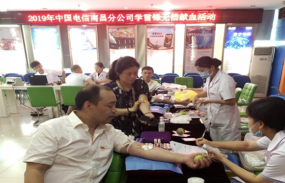 昨日上午,中国电信南昌分公司携手市中心血站开展了一场集体无偿献血活动。再过几天,就是“七一”党的生日了,在献血活动现场,南昌电信分公司党委书记邬高萍带头献血,起到了很好的表率作用,在场的党员、干部员工也热情高涨,纷纷加入爱心献血队伍。据统计,中国电信南昌分公司已经连续多年在炎热的暑期开展无偿献血活动,以实际行动践行党员的使命,每年前来献血的人数也在不断上升,今年共计75人献血2万余毫升。
