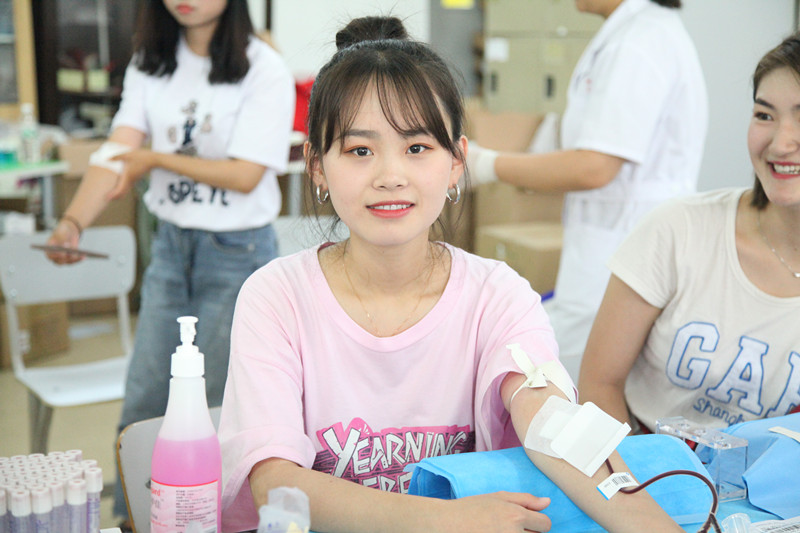 临近期末,同学们都忙于为期末考试做准备,但也有很多同学挤出时间奉献爱心,张晓同就是其中一位,这位漂亮的00后女生,虽然是第一次献血,但她没有胆怯,脸上洋溢着灿烂的笑容,她说:“今天我是和同学一起来献血的,献血过程很顺利,现在感觉挺好的,我们接着要去参加声乐期末考试。”