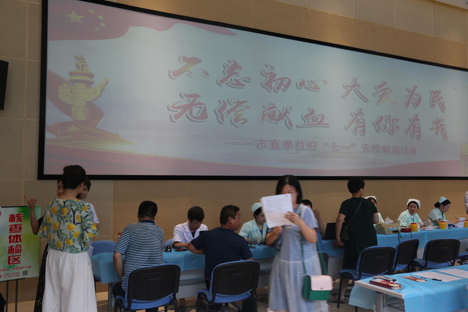 为保障临床用血需求,孝感市献血办于6月28日上午在市民之家集中开展市直单位迎“七一”无偿献血活动,主题为“不忘初心大爱为民,无偿献血有你有我”。